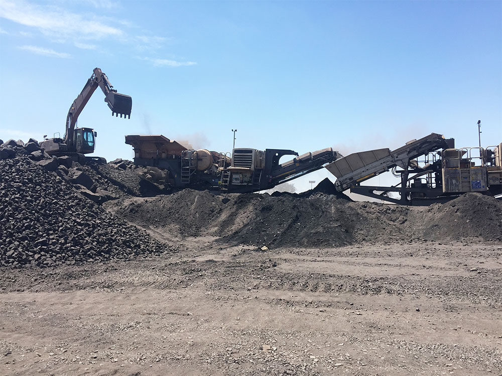 Britagem grossa: O material é britado até atingir uma granulometria adequada de 100 a 300 mm, estabelecendo a base para o processamento subsequente.