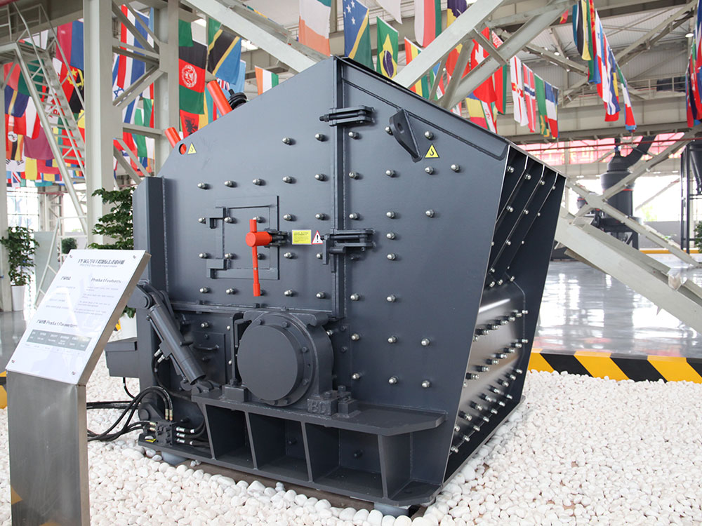 No método de britagem "pedra sobre pedra", o material de alimentação é triturado sozinho dentro da máquina, e o produto resultante apresenta um tamanho de partícula uniforme, um bom formato cúbico e um baixo teor de água. The operation process is briefly described as follows: the material is fed into the crusher from the feed port, and first screened by the screen plate, the fine particles are separated, and the large particles enter the crushing chamber under the guidance of the joint screen sistema. Na câmara de britagem, os martelos das placas no rotor rotativo de alta velocidade conferem ao material um impacto inicial violento. Depois disso, estes materiais triturados voam para a placa de impacto a uma velocidade muito elevada e passam por britagem secundária. O material salta continuamente entre a placa de impacto e a cabeça do martelo e, durante este processo, os materiais também colidem entre si e refinam-se ainda mais. When the particle size of the material is reduced enough to pass through the gap between the hammer head and the impact plate, it will enter the next crushing chamber for further crushing until it reaches the required particle size and is then discharged from the bottom of the equipamento. O tamanho das partículas do produto final pode ser facilmente ajustado ajustando a distância entre o bordo inferior da placa de impacto e o martelo da placa.